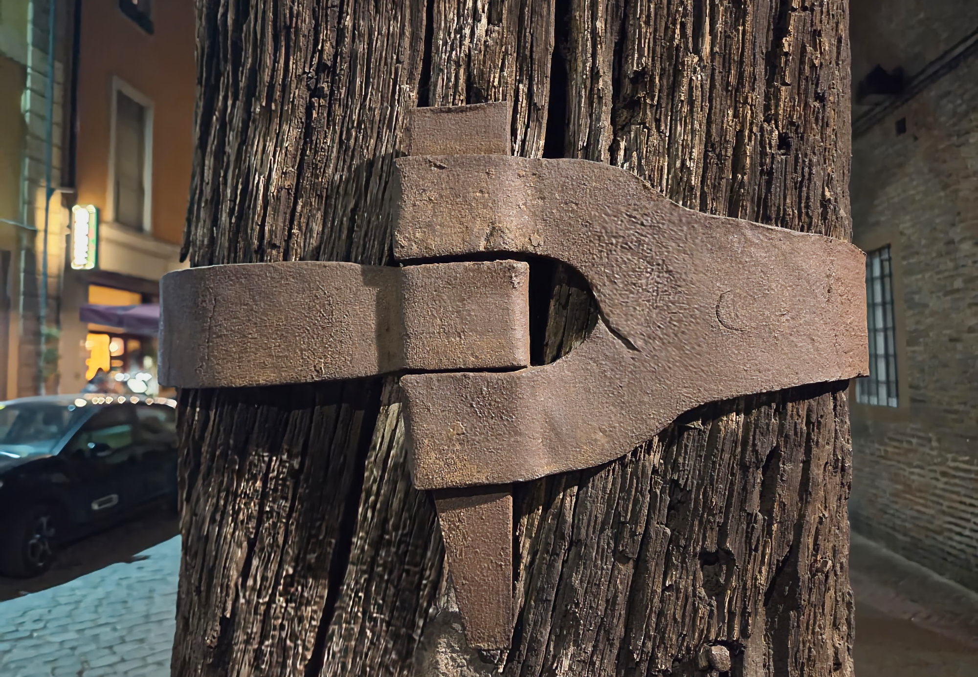 Fleje metálico con pasante. Bolonia, Italia, Marzo del 2026.